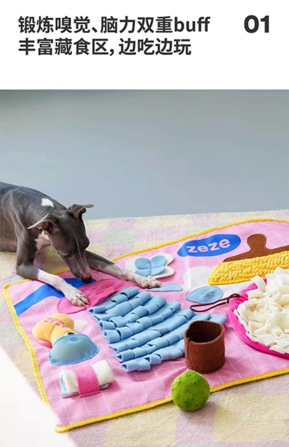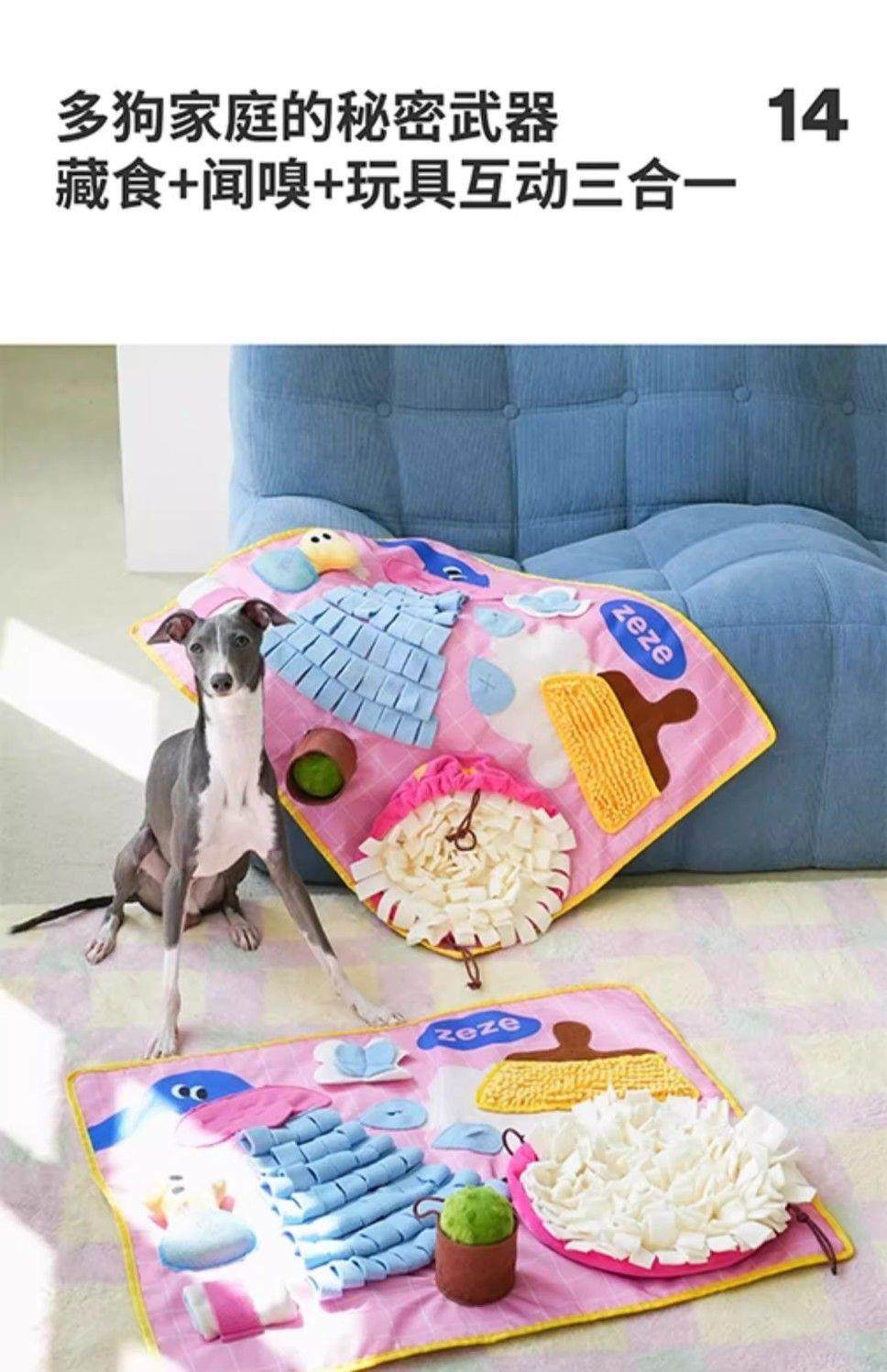 zeze dog hides food, sniffing pad, self-hi, relieves boredom, sounds, smells the blanket, leaks food, puppy pet educational toys